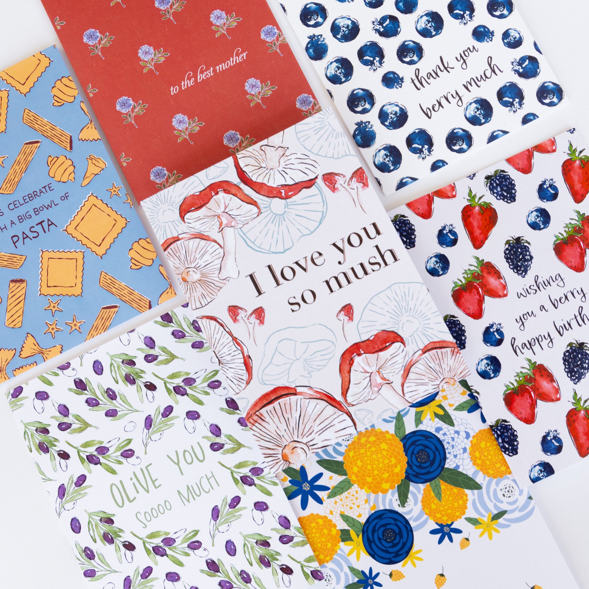 Set includes 8 cards and envelopes packed in a kraft plastic-free box